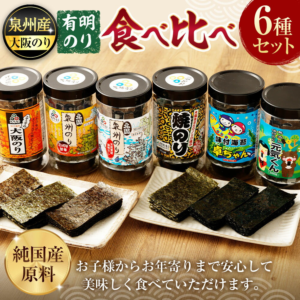 - 【ふるさと納税】泉州産 稀少 大阪のり&有明のり 食べ比べ 6種セット|泉州のり 無添加 こってり甘辛 焼きのり 焼き海苔 焼海苔 のり 海苔 詰合せ 詰め合わせ セット 国産 純国産 大阪府 阪南市 送料無料