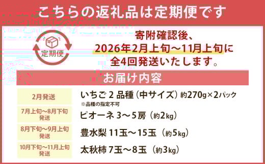 - フルーツ王国うきは 特選フルーツ定期便 【年4回定期便】 いちご ピオーネ 豊水梨 太秋柿 イチゴ ぶどう 梨 柿 果物 くだもの フルーツ 定期便 福岡県 うきは市