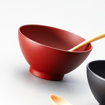 - 越前塗 こぶり椀ペア スプーンセット 吟朱・黒 φ10.4×5.4cm 食洗機・レンジ対応【1337780】
