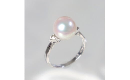 1461 Pt900 【大粒】あこや本真珠 9.0㎜up ダイヤモンド0.10ctリング