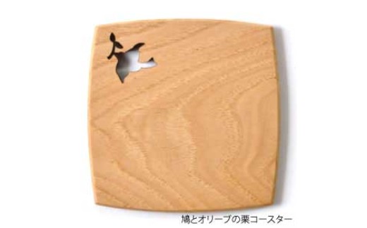 - 手造り木工(栗材)コースター (鳩とオリーブ切り抜き)