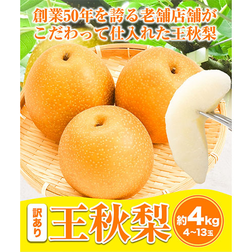 【2026年先行予約】【訳あり】王秋梨 約4kg (4~13玉) 高間商店《2026年10月下旬-1月中旬頃出荷予定》 鳥取県 八頭町 梨 なし ナシ 果物 フルーツ ご家庭用 先行予約 ふるさと納税 送料無料 甘い 果実 果汁 デザート 王秋梨