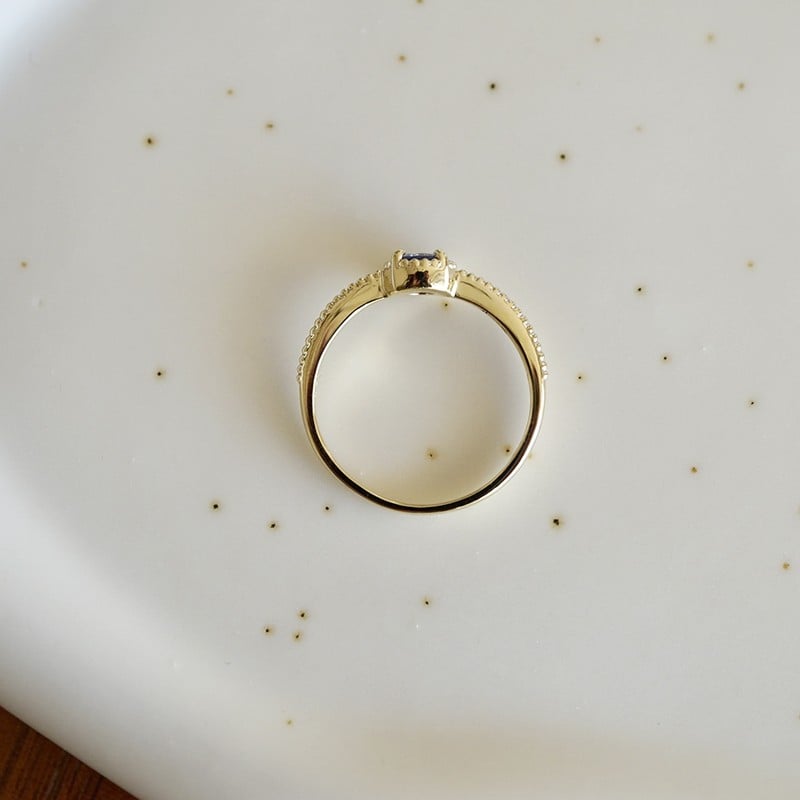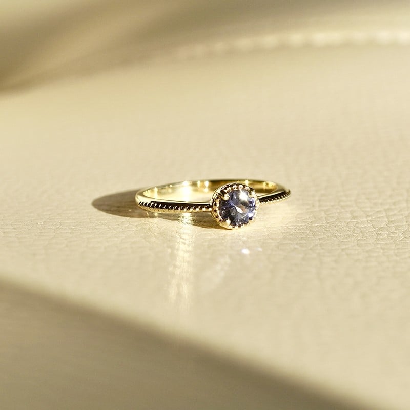 - < 甲府ジュエリー >【ジュエリー】K10 イエローゴールド タンザナイト 一粒石 シンプル リング 指輪 保証書付 NR-1838【サイズ:7号~17号※0.5号刻み】