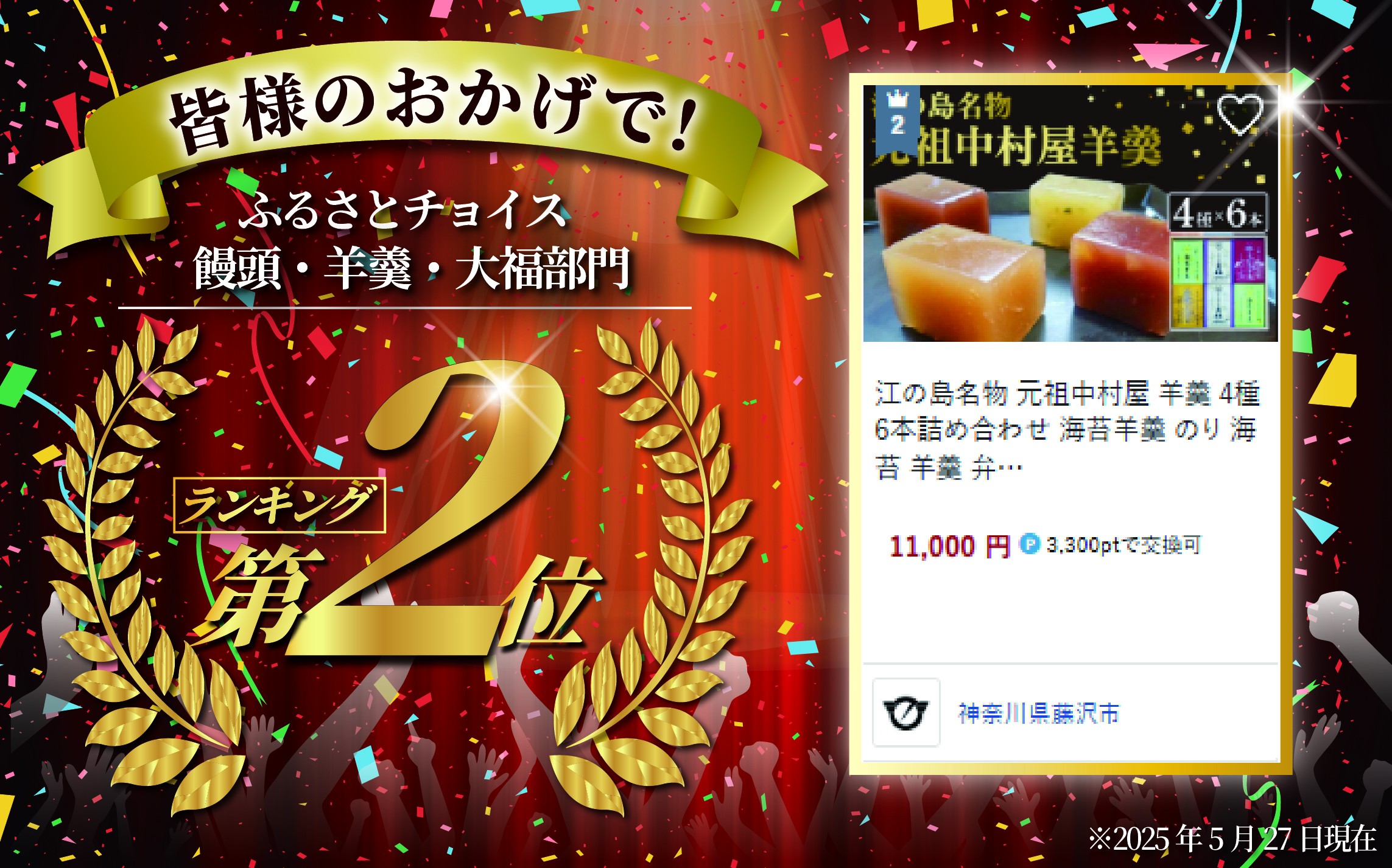 - 江の島 名物 元祖中村屋 羊羹 4種 6本 詰め合わせ 和菓子 海苔羊羹 のり 海苔 羊羹 弁天塩羊羹 栗羊羹 くり クリ 塩羊羹 本煉羊羹 和菓子 ようかん youkan 和菓子 あんこ 餡 中村屋羊羹店 江の島 湘南 神奈川 藤沢