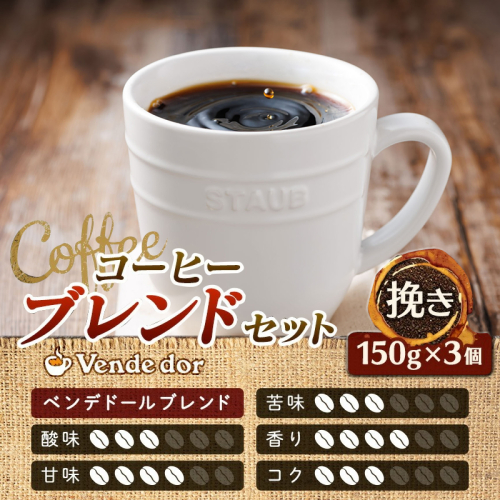 - ブレンド コーヒー 挽き (150g×3個セット)【1月7日以降順次発送】コーヒー豆 人気 コーヒー 珈琲豆 ベンデドール 珈琲 自家焙煎 2026年 年始発送 北海道 釧路町 釧路超 特産品