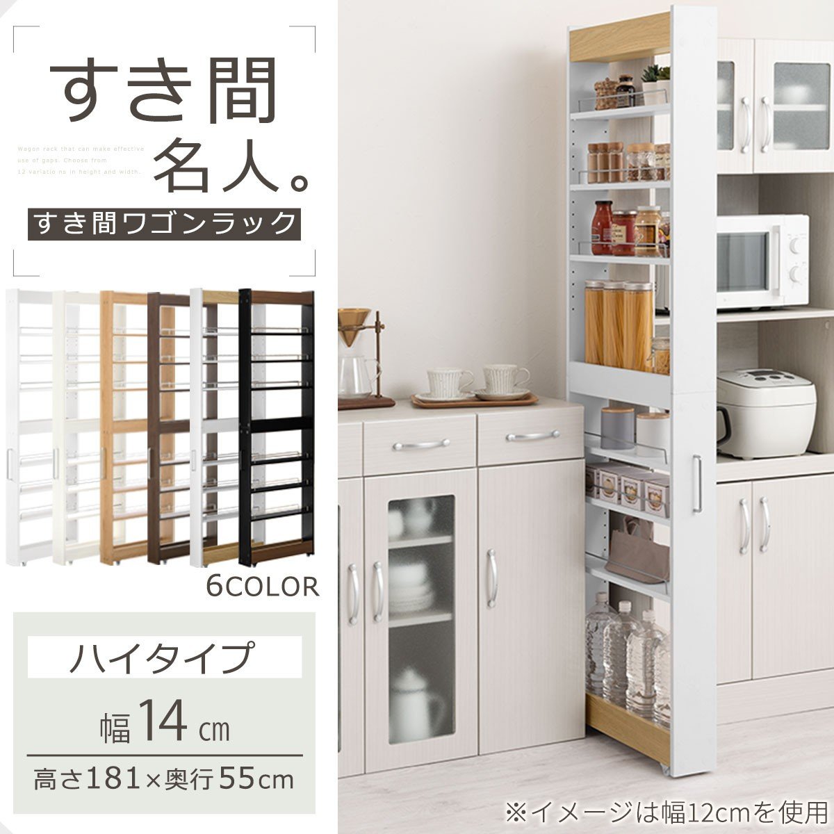 - 【完成品+設置付き】すき間ワゴンラック ハイタイプ〔幅14cm〕(選べる6色)隙間収納 キッチン キャスター付き キッチンワゴン スリム 収納 すき間収納 ランドリー ラック 薄型 木製 すき間 洗面所 KKONRA945192