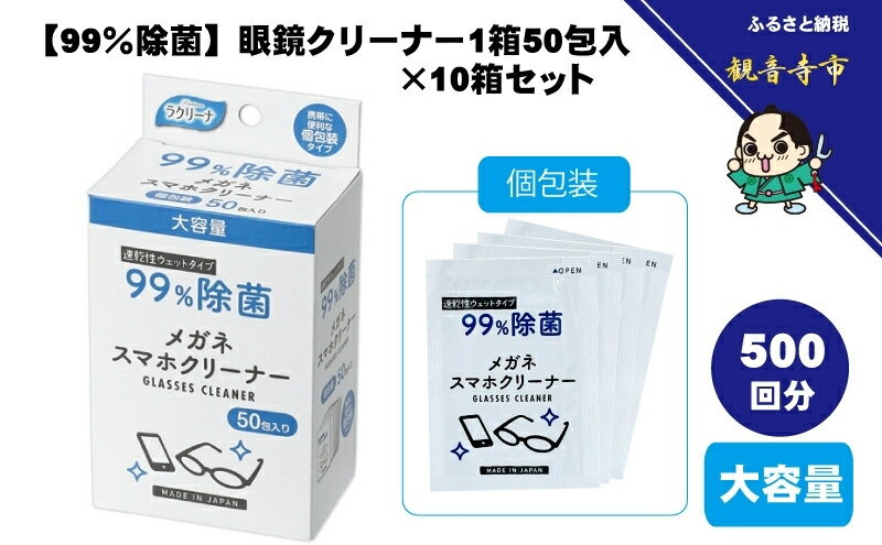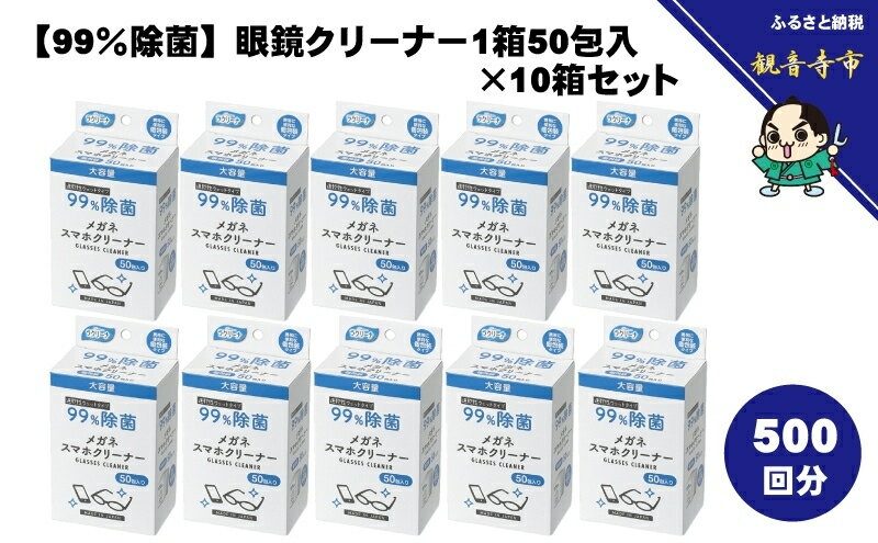 - 【ふるさと納税】【99%除菌】眼鏡クリーナー1箱50包入(個包装)×10箱セット(500回分)〈KA-158F〉 お届け:ご寄附(入金)確認後、およそ2週間以内に配送いたします。