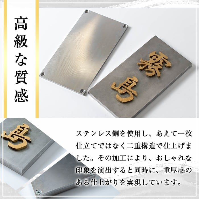 - <選べるサイズ>金属製高級表札(120mm・150mm・190mm)【キリシマ精工】霧島市 表札 ステンレス 高級 立体 戸建 屋外 オフィス 卓上 縦書き 横書き K-619 K-625 K-626