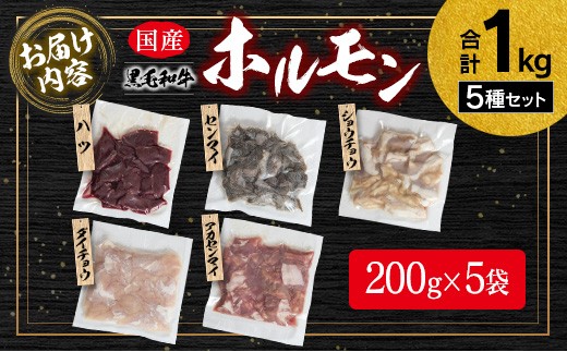 国産黒毛和牛ホルモン 5種セット 合計1kg やみつき 小分け 冷凍【B685】