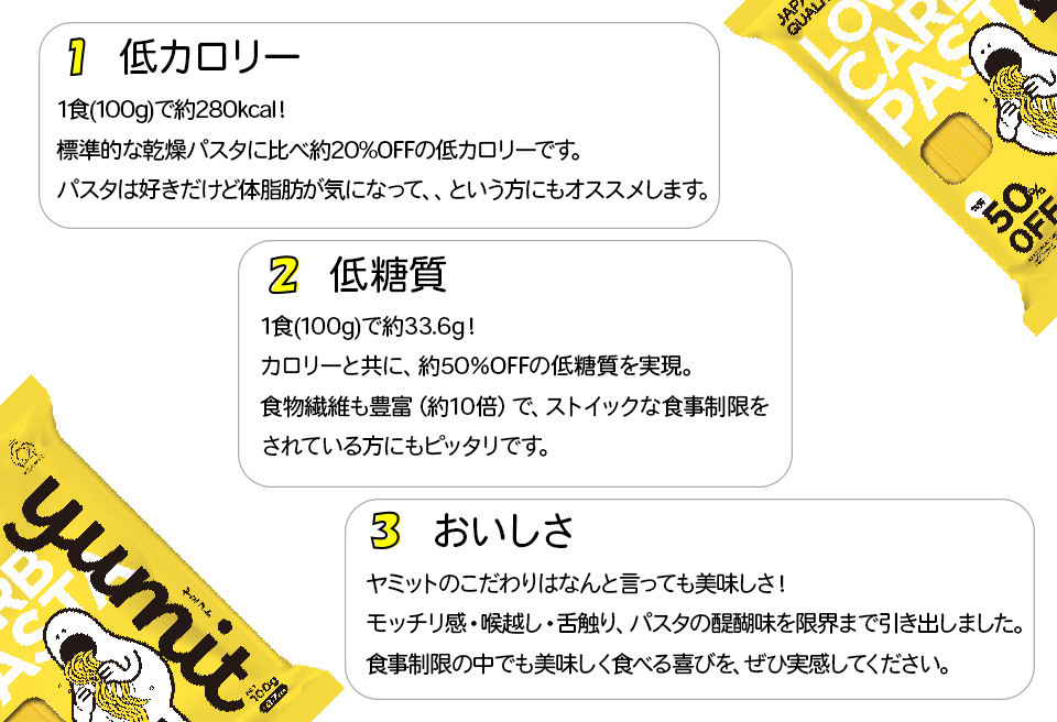 - yumit(ヤミット)低糖質パスタ8食セット 100g×8袋 太さ1.7mm 【低糖質 ダイエット 低カロリー 食事制限】