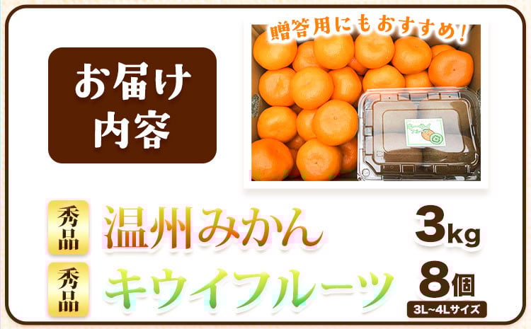 紀の川市産 温州みかん3kg+キウイフルーツ8個 和田果樹園《1月中旬-2月下旬頃出荷》 和歌山県 紀の川市 みかん ミカン 温州みかん 柑橘 キウイ キウイフルーツ 果物 フルーツ 贈答用 送料無料