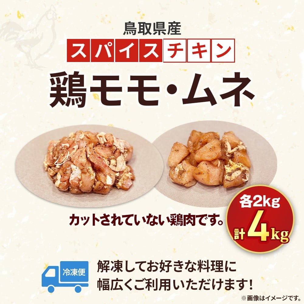 - 【鳥取県産 スパイスチキン】 選べる種類! 2kg〜4kg 鶏肉 鶏もも 鶏むね 若鶏 骨付きもも チキン 鳥取県 倉吉市
