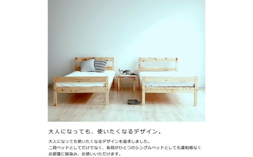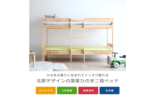 - No.1197 国産 ひのき 二段ベッド(b2-0054) / 桧 家具 木製 ベッド 国産ベッド 子ども部屋 北欧 インテリア 無垢材 集成材 F☆☆☆☆ 耐荷重180kg 固定式はしご 分割可能 シングルベッド すのこ 通気性 安定設計 国産家具 府中市