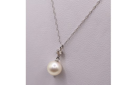 - 1932 Pt あこや本真珠 6.5㎜up ダイヤモンド0.09ct ペンダントネックレス