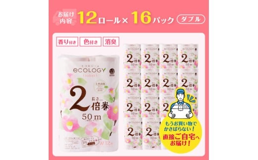 トイレットペーパー 2倍巻き エコロジー ピンク ダブル 192ロール やわらか ベビーローズの香り 消臭 長巻き クラフト包装 日用品 富士市 [sf002-554]