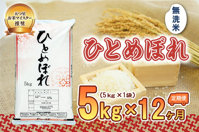 - 【ふるさと納税】米 定期便 12ヶ月 ひとめぼれ 無洗米 5kg お米 精米 白米 こめ コメ おこめ ごはん お米マイスター 推奨 ブランド米 常温 国産 岩手県 岩手 盛岡市産 定期 お楽しみ 12回