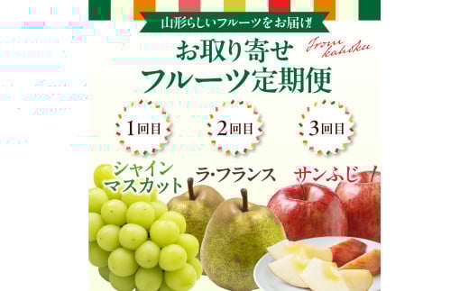 - 【令和8年産】河北町の山形らしいフルーツ定期便 3回(シャインマスカット・ラフランス・サンフジ)【山形eLab】 ka074-029-r8