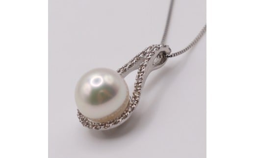 - 1945 K18WG あこや本真珠 8.0㎜up ダイヤモンド0.16ct ペンダントネックレス