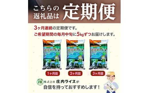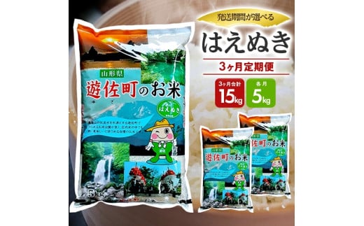1364T03 【定期便】遊佐産はえぬき5kg×3ヶ月連続(3月~5月)