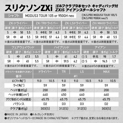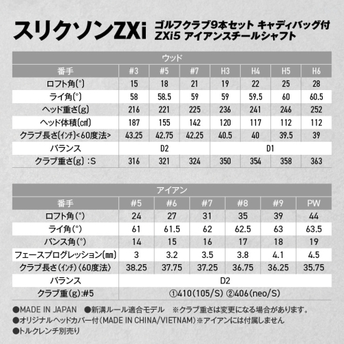 - スリクソンZXi ゴルフクラブ9本セット キャディバッグ付【ZXi5 アイアンスチールシャフト】_Z4-C701