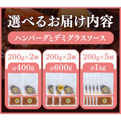 - デミグラスソース ハンバーグ 選べる内容量 200g×3 計600g 200g×5 計1kg キッチンふじ 冷凍 《60日以内に出荷予定(土日祝除く)》ジューシー 肉 牛肉 熊本県御船町 惣菜 お弁当 加工食品