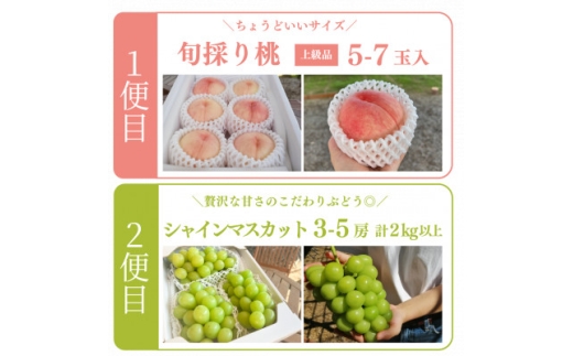 - <発送月固定定期便><2026年先行予約>人気果物2種類が届く 桃とシャインの満足便(岡山産)全2回【4071128】