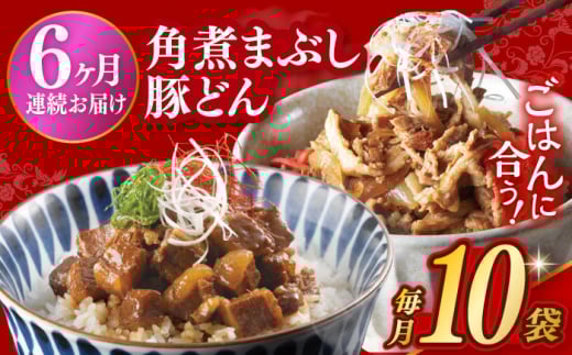 【6回定期便】【簡易包装】長崎角煮まぶし5袋&豚どん5袋 [EAB078] 豚丼 ぶたどん 豚どん 角煮 かくに まぶし レトルト おかず 小分け 冷凍 長崎岩崎 岩崎本舗 定期 定期便