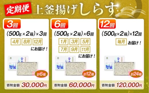 - 【定期便3回】釜揚げしらす 1kg(500g×2箱) 冷凍 箱入り 計6箱 惣菜 弁当 便利 ランキング 減塩 無添加 無着色 ご飯 ごはん 丼 料理 国産 カネ成 シラス おつまみ お取り寄せ お取り寄せ サラダ グルメ 人気 おすすめ シラス しらす しらすごはん shirasu sirasu SIRASU 人気シラス 愛知県 南知多町