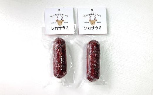 [№5930-0432]ゆったりゆうべつシカサラミ(2本セット) 鹿 エゾ鹿肉 エゾ鹿 ジビエ サラミ ヘルシー 低カロリー 国産 産地直送 オホーツク 北海道 湧別町