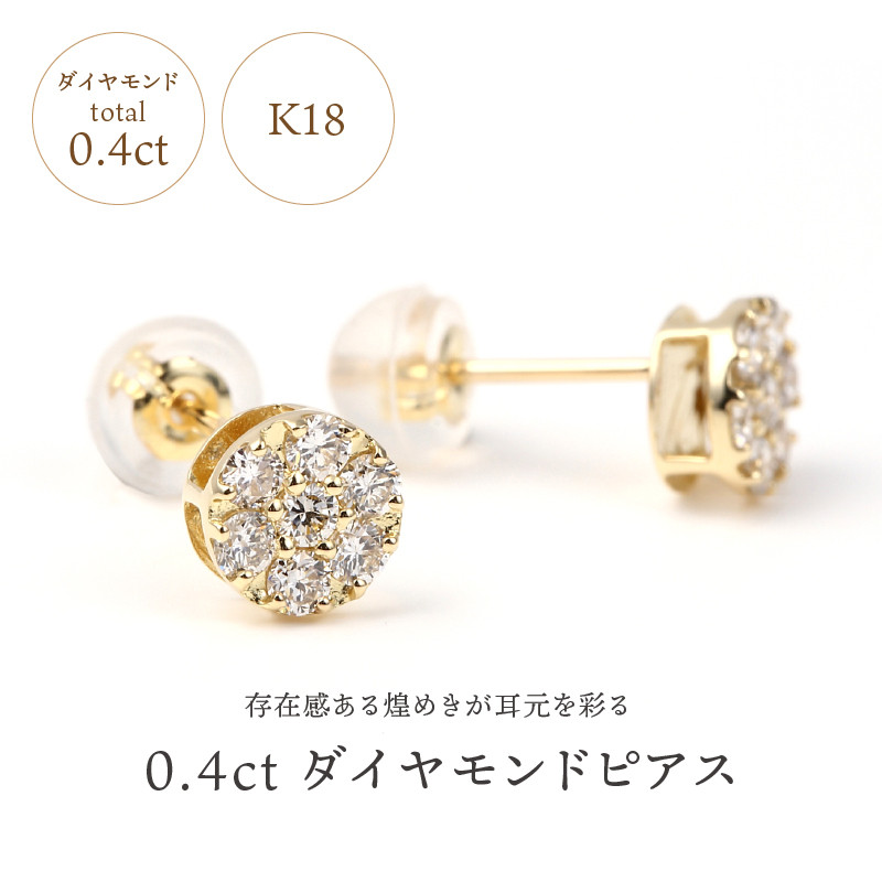 - 〈 甲府ジュエリー 〉トータル0.40キャラット K18 ダイヤモンドピアス E152DI-Y