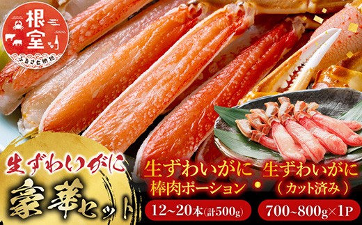 C-11045 お刺身OK!生ずわいがに棒肉ポーション12~20本(計500g)、生ずわいがに(カット済み)700~800g×1P