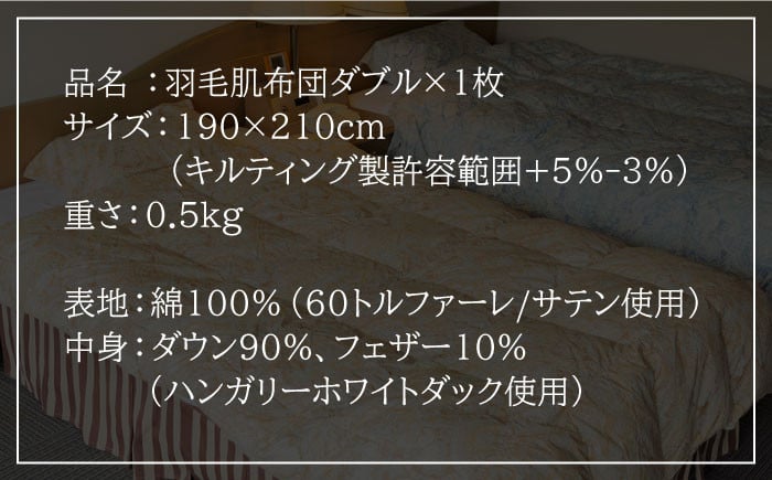 羽毛肌布団 ダブル ハンガリー産ホワイトダックダウン90%使用 エクセルゴールドラベル トルファーレ60 サテン生地《壱岐市》【壱岐工芸】[JCD020] 100000 100000円 10万円