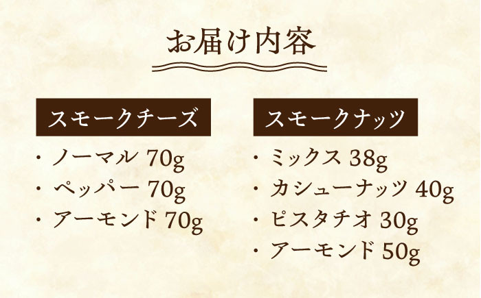- 【3回定期便】【燻製職人手づくり】スモークチーズとスモークナッツ7点セット おつまみ ミックスナッツ カシューナッツ ピスタチオ アーモンド 熊本県 ナッツ チーズ 燻製 スモーク つまみ 【燻製工房 縁】[ZBF060]