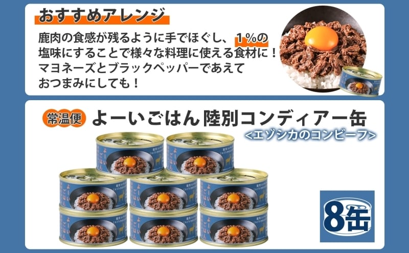 よーいごはん 陸別コンディアー 8缶 缶詰 保存 備蓄 鹿 エゾシカ 浜田旅館 北海道 陸別町