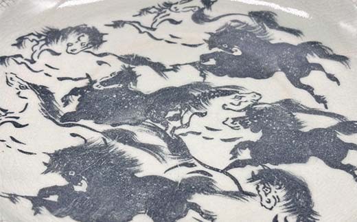 伝統工芸品大堀相馬焼 栖鳳窯 馬九絵皿 F6U-369