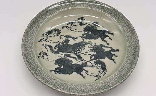 - 伝統工芸品大堀相馬焼 栖鳳窯 馬九絵皿 F6U-369