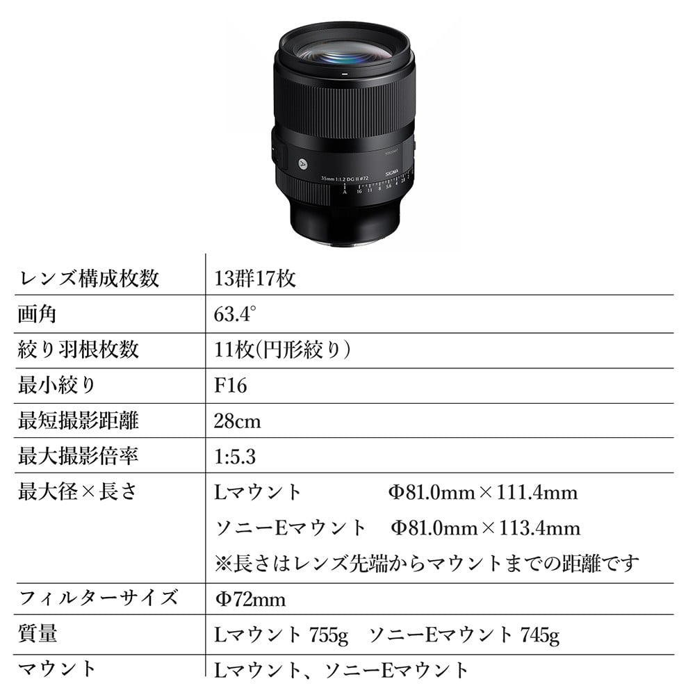 - SIGMA 35mm F1.2 DG II | Art【Lマウント/ソニーEマウント】