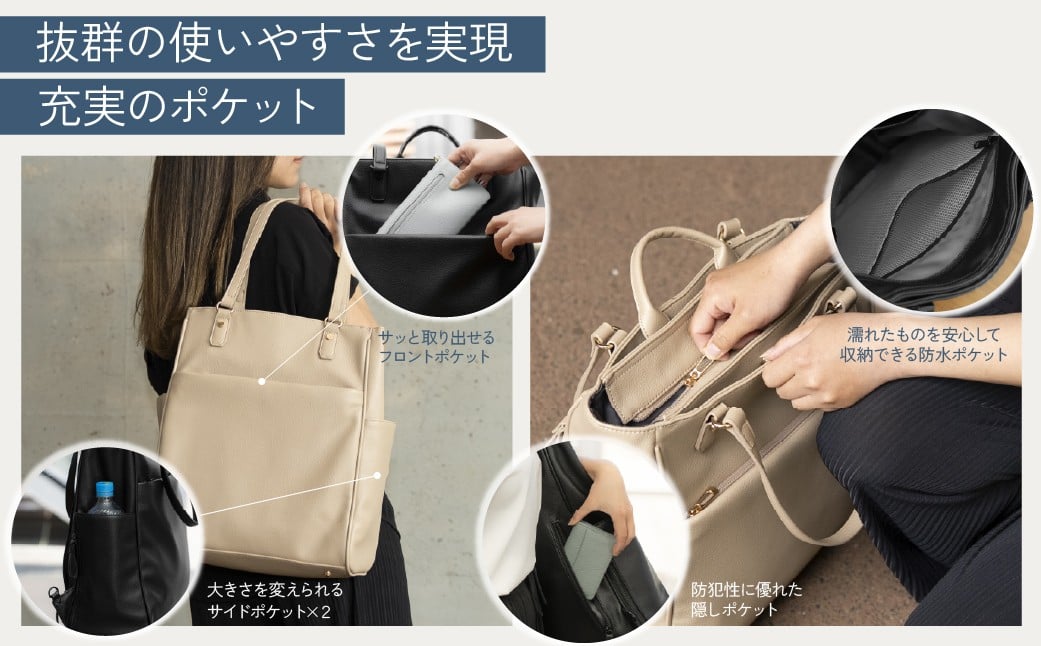 - レディースリュック 3WAY レディースビジネスバッグ 選べるカラー ブラック or グレージュ [BEMOVITA] | ビジネスリュックトー ト ハンド リュック ビジネス カバン A4 軽量 PC収納 収納 ノートPC 13インチ 多機能 バッグ レザーライク 肩掛け 自立 通勤 仕事 仕事用 旅行 出張 レディース 大容量 お出かけ 通学