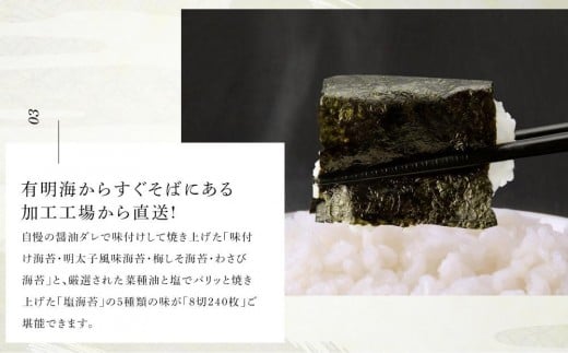 有明海産一番摘み 自慢の明太子風味海苔2本セット(8切80枚×2本 計160枚)【海苔 のり ノリ 有明海苔 有明のり 詰合せ 味付け海苔 味つけ海苔 海苔セット 明太子風味 味海苔 味のり 一番摘み 海苔 味付海苔 BX010】