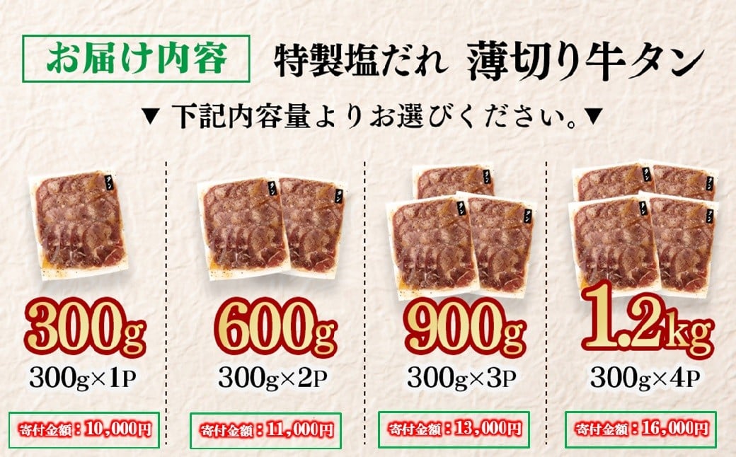 【選べる内容量】特製塩だれ薄切り牛タン 300g~1.2kg<1-295>味付き BBQ 焼肉 たれ タレ塩ダレ