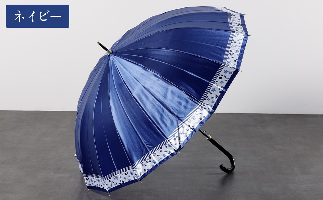 - 【カラーが選べる】婦人サテン裾花柄 軽量16本骨60cmジャンプ ネイビー・ワイン・ブルー ワンタッチ ワンプッシュオープン 傘 雨傘 レディース 長傘 サテン生地 福岡県 筑後市