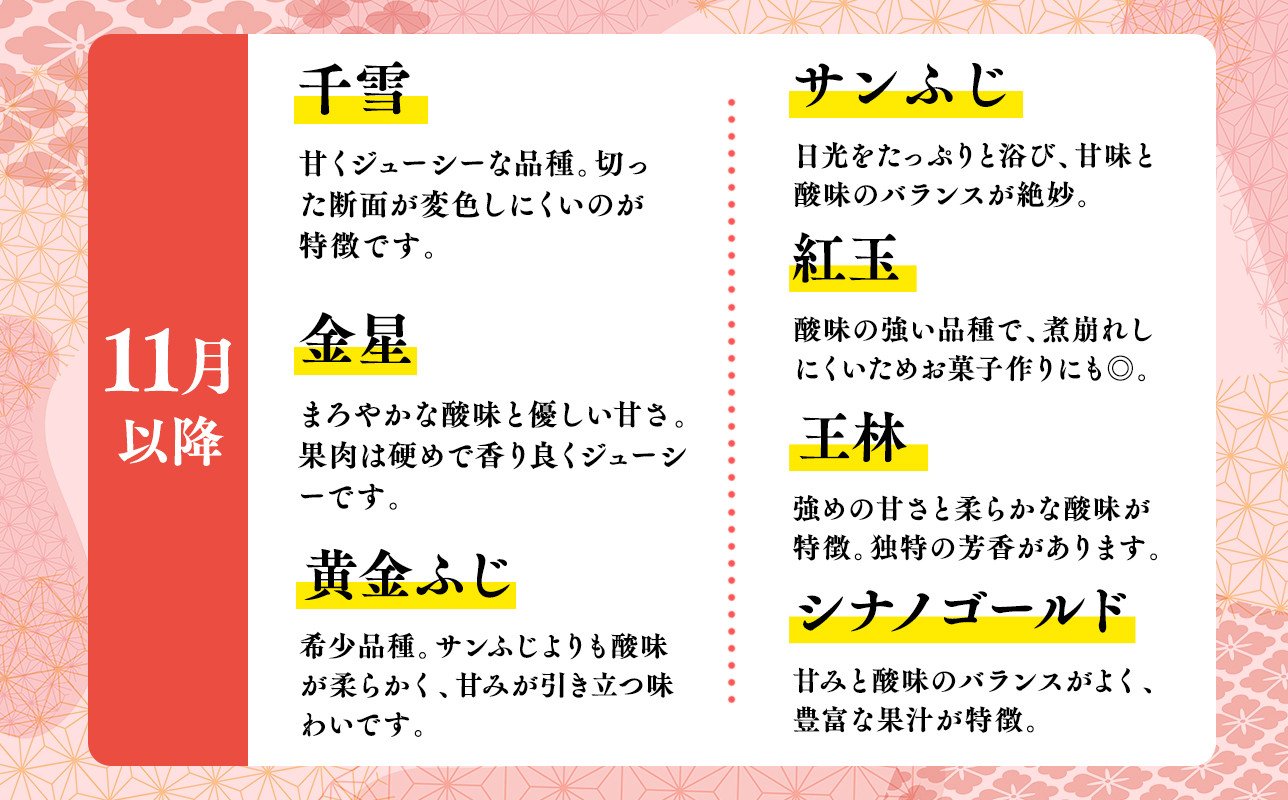 JA42-26A 【先行予約】 りんごの定期便 りんご三兄弟®(秋映・シナノスイート・シナノゴールド)各約2.5kg×3回 / 2026年9月下旬~11月上旬 // 長野県 南信州産 贈答 センサー選別 定期便 長野県オリジナル品種