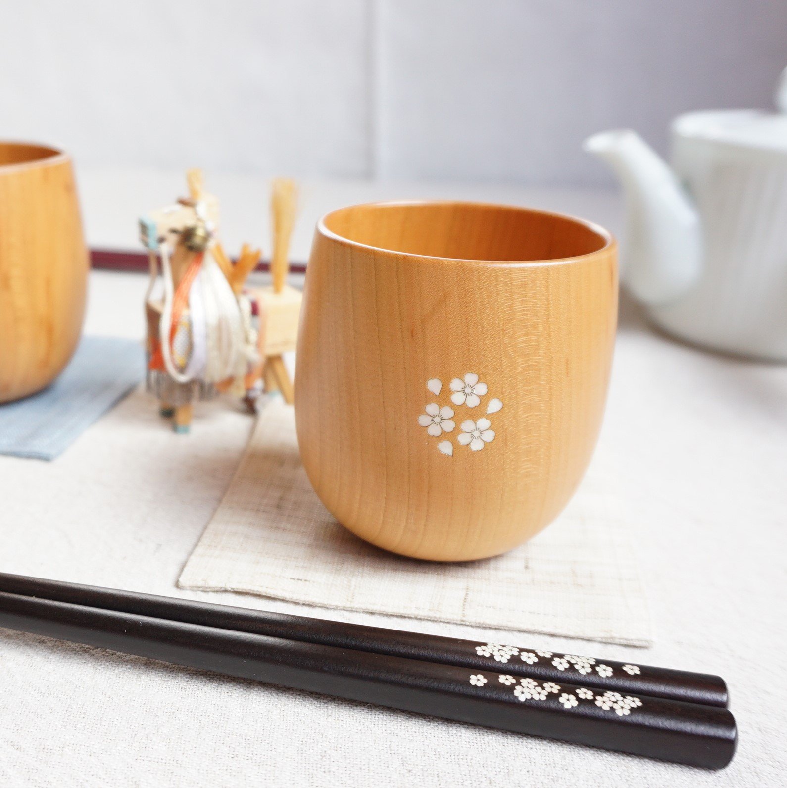 - 貝象嵌 おちょコップ ロング 木製 コップ おちょこ ギフト箱入り 贈り物 記念品 クリスマス プレゼント 贈り物 ギフト 山桜 無垢材 こっぷ 岩手県 北上市 有限会社 夢工房 E0304 かわいい 工芸品