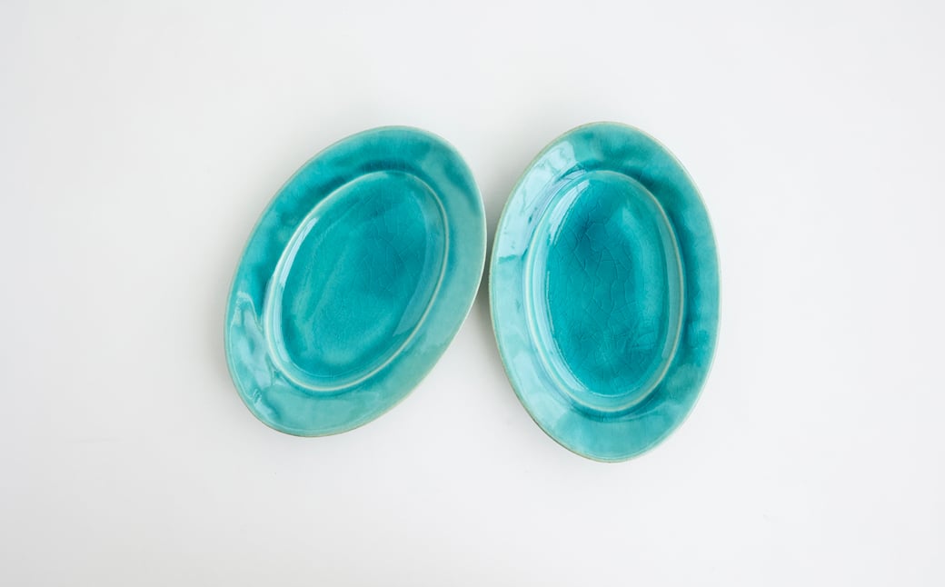 【Awabi ware】 オーバル皿S ペアセット (トルコ青×2) 《決済から3ヶ月前後で発送》