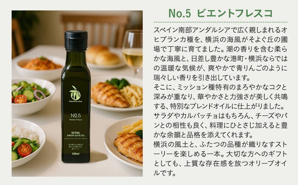 横浜オリーブ No.5ビエントフレスコ エクストラバージンオリーブオイル120ml