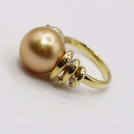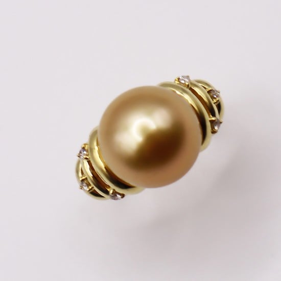 1962 K18 南洋ナチュラルゴールデン真珠12.0㎜up ダイヤモンド0.09ct リング