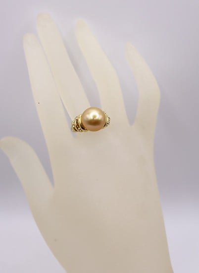 - 1962 K18 南洋ナチュラルゴールデン真珠12.0㎜up ダイヤモンド0.09ct リング