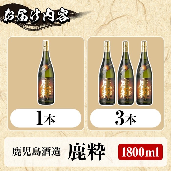 <本数が選べる!>鹿児島酒造「鹿粋」(1800ml×1~3本) 国産 鹿児島県産 ろくすい 本格焼酎 芋焼酎 お酒 アルコール お湯割り 水割り 父の日 ギフト 1升瓶 一升瓶【鹿児島酒造】