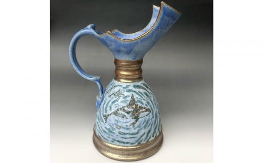 益子焼 オルカとクジラのいる注器*花器 | 栃木県 伝統工芸品 美術品 1点限定品 一点物 陶器 陶芸 作家