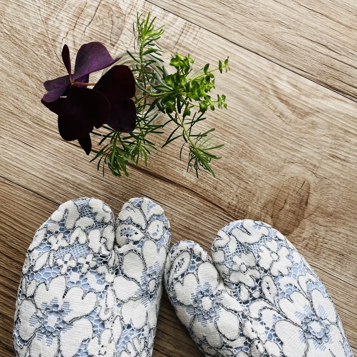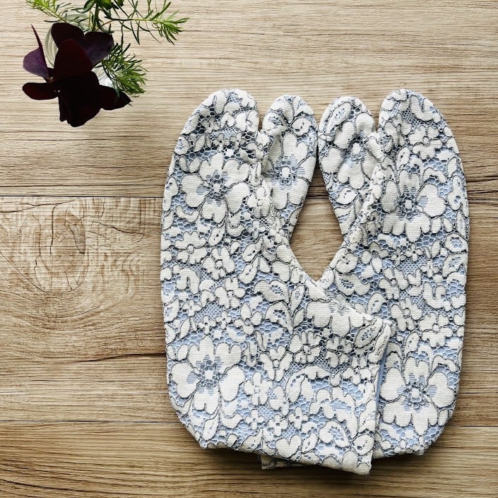可憐なグレーのふちどりのお花柄足袋 サイズオーダー[AB05]